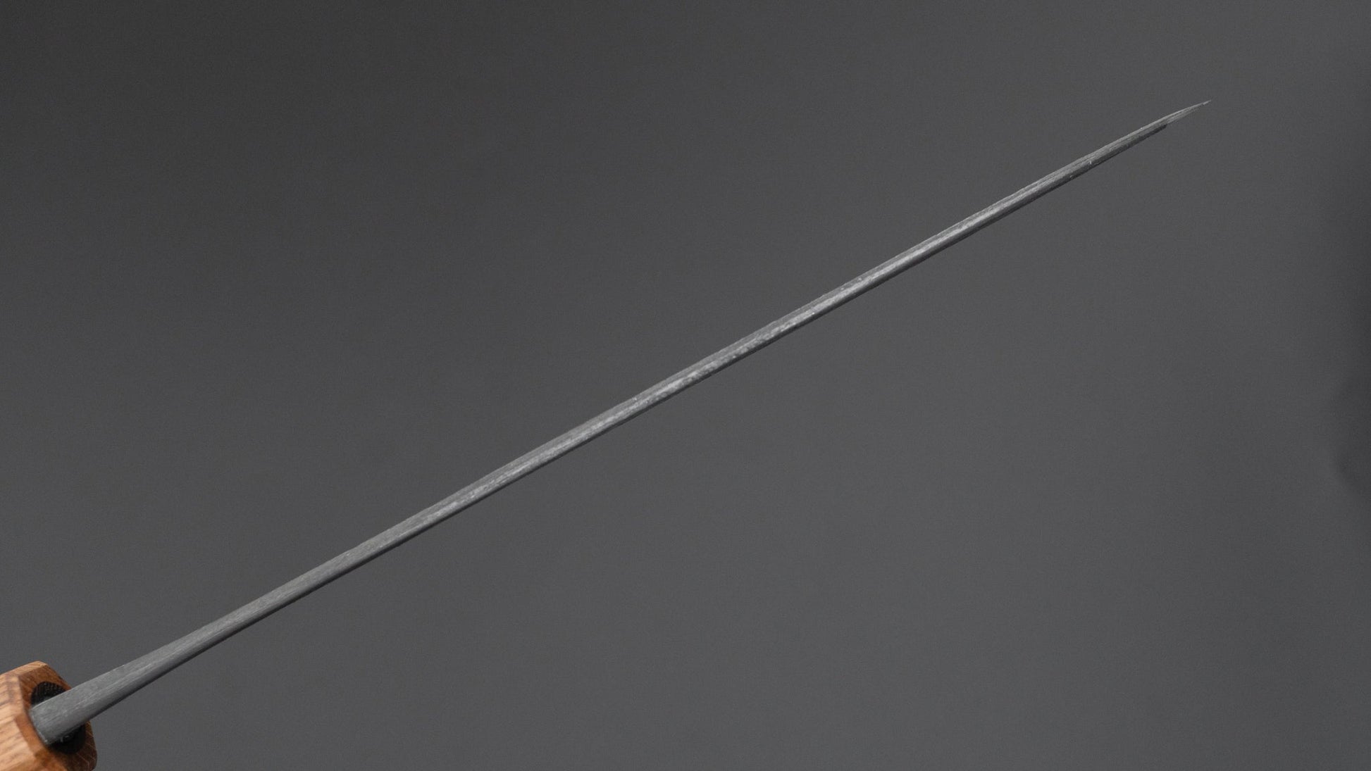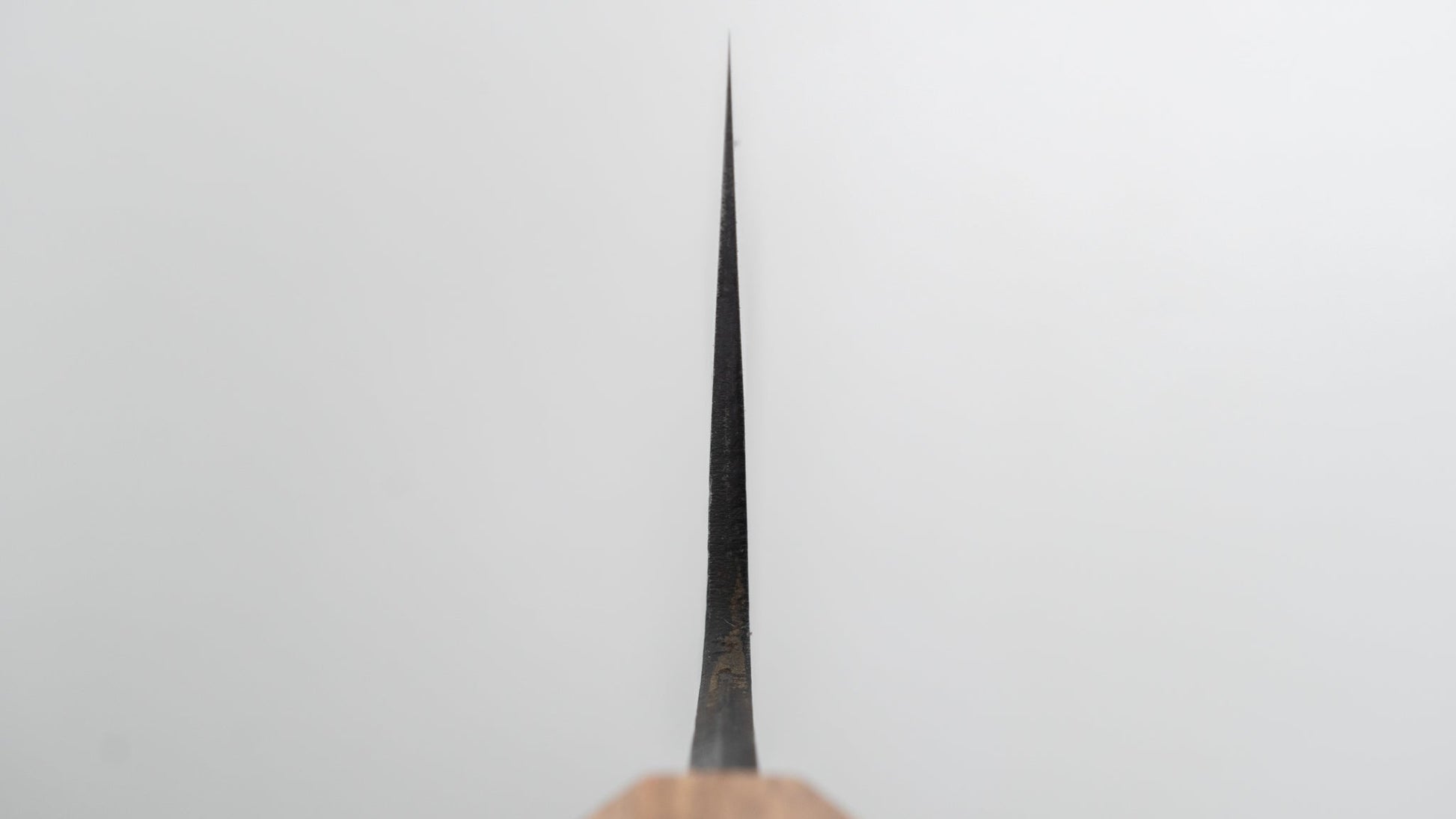 This is a carbon steel knife. Carbon steel is a non-stainless steel that lacks sufficient chromium and/or nickel to protect it from oxidation. As a result, it reacts to moisture and oxygen. While this may sound like a downside, it’s actually a key feature. Carbon steel forms a unique patina over time, is easy to sharpen, and offers excellent edge retention.