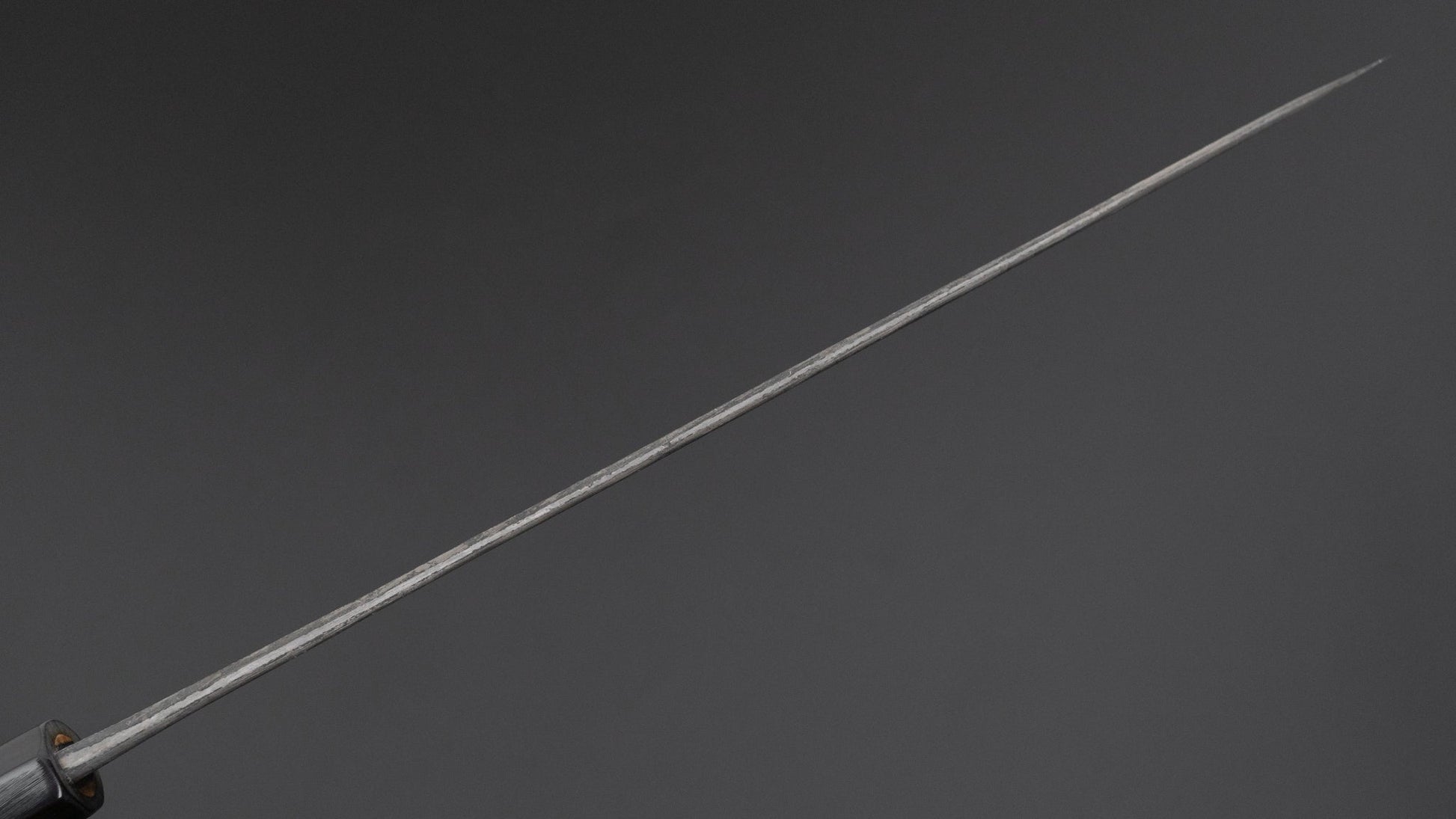 The Hitohira Hinode and Ajikataya series are forged by Sanjo based blacksmith Mutsumi Hinoura. He is the 4th generation blacksmith in the Hinoura family and trained under his father, the highly esteemed master blacksmith Tsukasa Hinoura. He runs a beautifully clean and organized workshop. The blades feature a tsuchime, nashiji or smooth kurouchi finish as is characteristic for Sanjo style knives. His kurouchi is very long lasting and greatly reduces oxidation on the carbon steel blades. The spine is somewhat thick, but tapers down to a very thin tip and similarly towards the edge. The edge retention is one of the best of the white twos we’ve come across. This is not only because of the steel quality but for a good part because of the grind. These knives are trademarked by their narrow wide bevel grind with amazing consistency. With this flat geometry it is also a treat to thin and polish on stones. These knives have a steady feel to them, they’re strong but thin behind the edge for super clean and precise cuts. We carry multiple knives by Hinoura San, a variety of shapes and finishes. Restocks expected every 5-6 months.