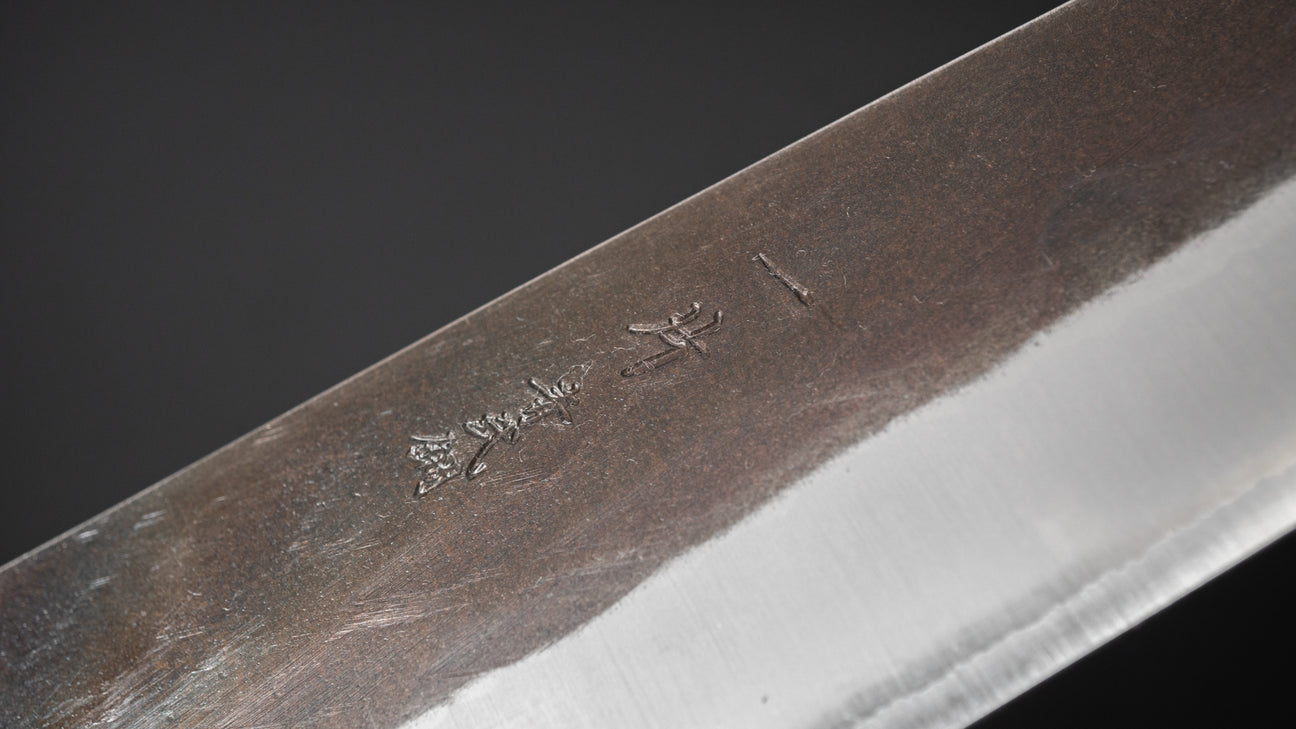 The Hitohira TD series consists of sturdy handmade knives from Sanjo, Niigata. All the knives we carry in the TD series are hand forged which makes for a noticeable improvement in steel quality. Very good prices for hand-forged knives. They come in kurouchi, tsuchime, nashiji and sometimes migaki finished stainless cladding on either Blue #2 or SLD core steel. Like many Sanjo made knives, they have spines that are somewhat thicker towards the neck, making for a nice grip and a little more weight. Very well made and dependable knives.