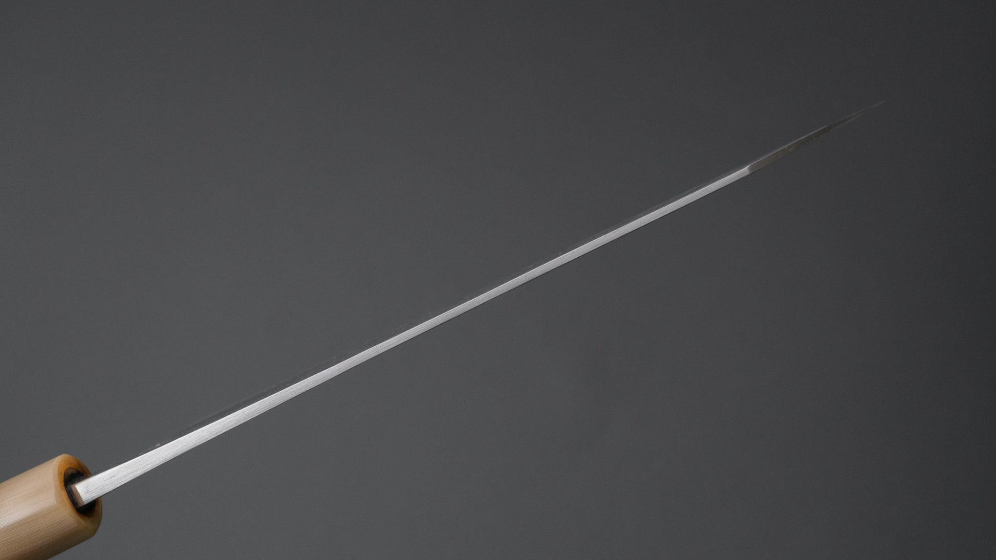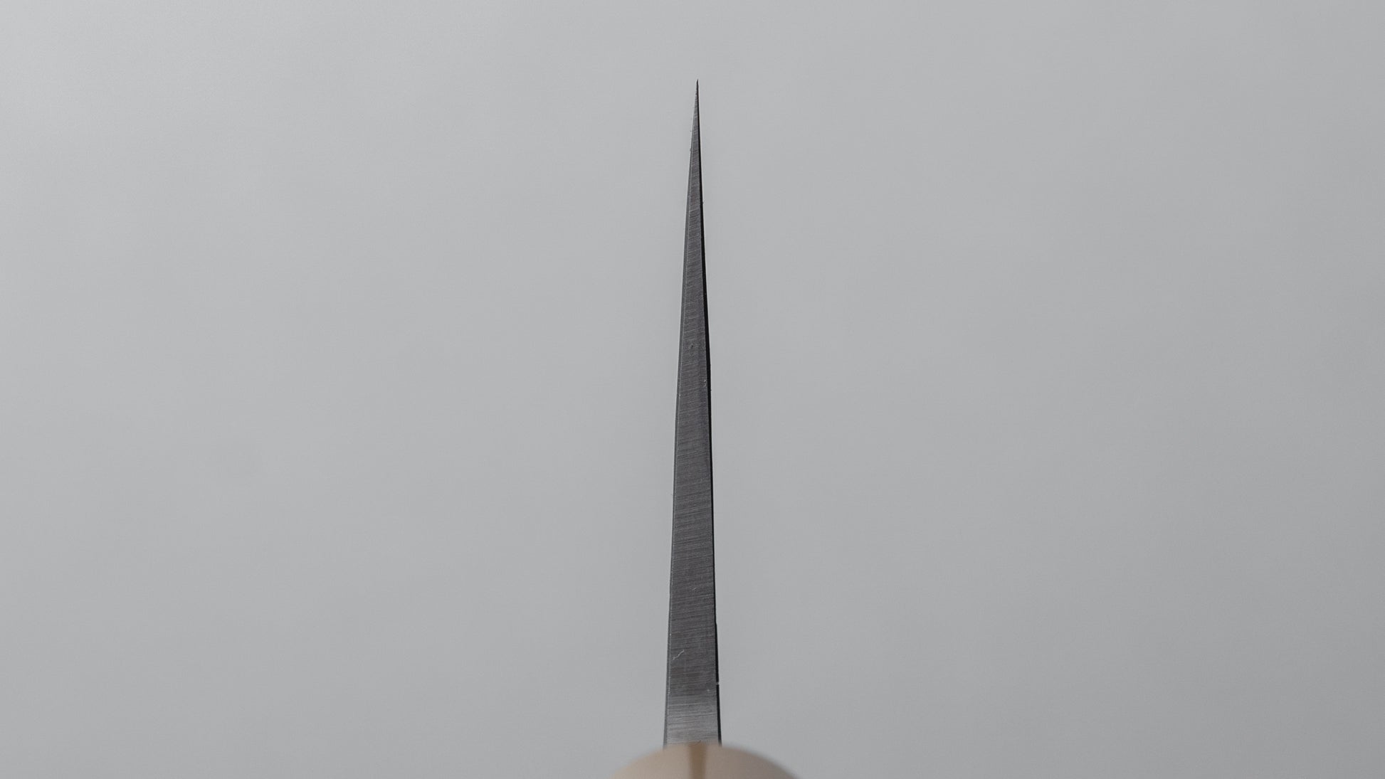 The Santoku is every bit as versatile as a Gyuto, but it’s more at home in everyday cooking. Probably the most used to-go knife at home. It’s easy to handle, super nimble, and great for just about any kitchen task.