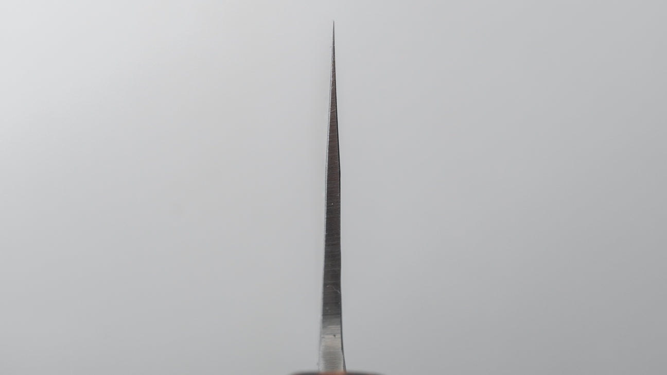 The Santoku is every bit as versatile as a Gyuto, but it’s more at home in everyday cooking. Probably the most used to-go knife at home. It’s easy to handle, super nimble, and great for just about any kitchen task.