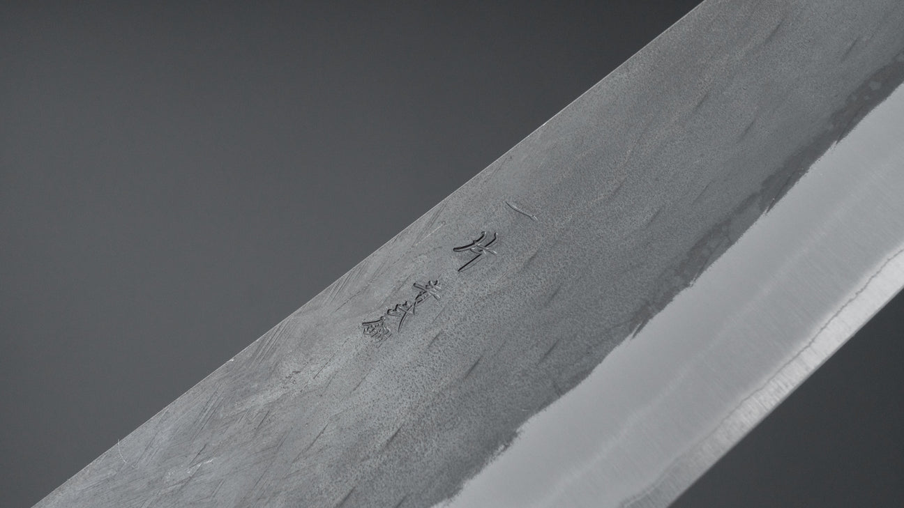 The Hitohira TD series consists of sturdy handmade knives from Sanjo, Niigata. All the knives we carry in the TD series are hand forged which makes for a noticeable improvement in steel quality. Very good prices for hand-forged knives. They come in kurouchi, tsuchime, nashiji and sometimes migaki finished stainless cladding on either Blue #2 or SLD core steel. Like many Sanjo made knives, they have spines that are somewhat thicker towards the neck, making for a nice grip and a little more weight. Very well made and dependable knives.