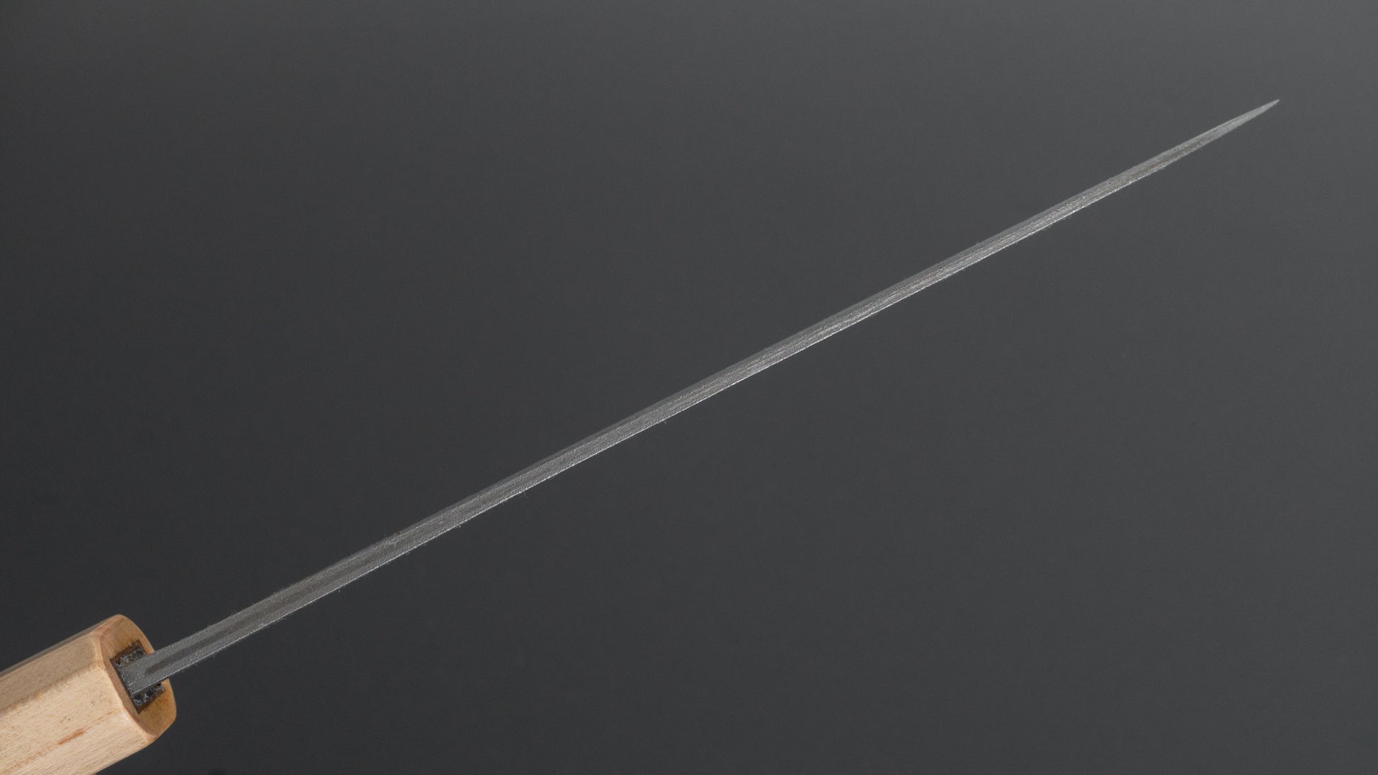 The Santoku is every bit as versatile as a Gyuto, but it’s more at home in everyday cooking. Probably the most used to-go knife at home. It’s easy to handle, super nimble, and great for just about any kitchen task.