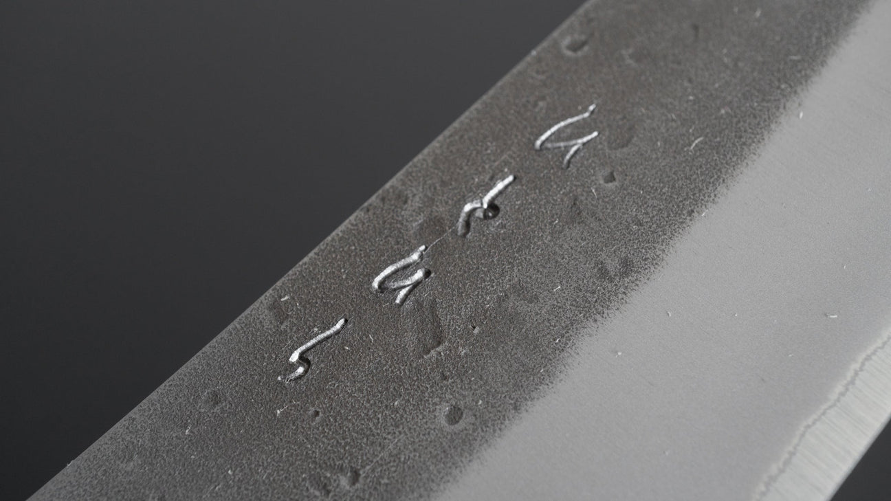 The Hitohira TD series consists of sturdy handmade knives from Sanjo, Niigata. All the knives we carry in the TD series are hand forged which makes for a noticeable improvement in steel quality. Very good prices for hand-forged knives. They come in kurouchi, tsuchime, nashiji and sometimes migaki finished stainless cladding on either Blue #2 or SLD core steel. Like many Sanjo made knives, they have spines that are somewhat thicker towards the neck, making for a nice grip and a little more weight. Very well made and dependable knives.