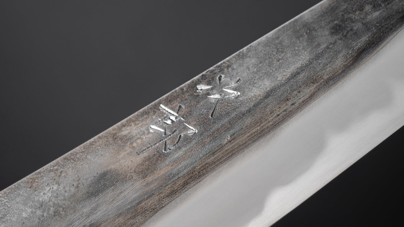 His knives are made from Shirogami No.1 carbon steel, one of the purest carbon steels used in modern knife making. Jiro-san takes on the forge welding himself, skillfully combining the harder core with the softer iron cladding. By managing the entire process in-house, he has full control over every detail, allowing him to forge each knife at the ideal temperature. It’s rare to find knives made without pre-laminated steel, but Jiro-san’s knives feature a thick spine that can only be achieved through his dedicated craftsmanship.