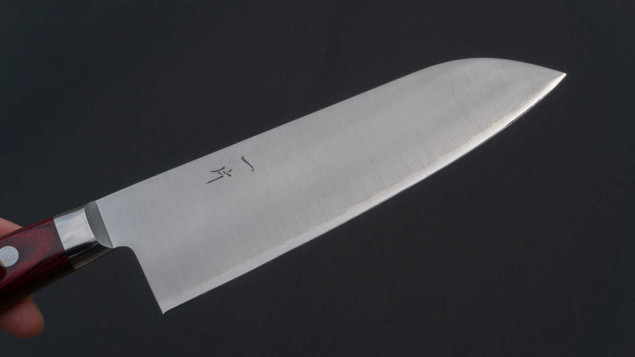 The Santoku is every bit as versatile as a Gyuto, but it’s more at home in everyday cooking. Probably the most used to-go knife at home. It’s easy to handle, super nimble, and great for just about any kitchen task.